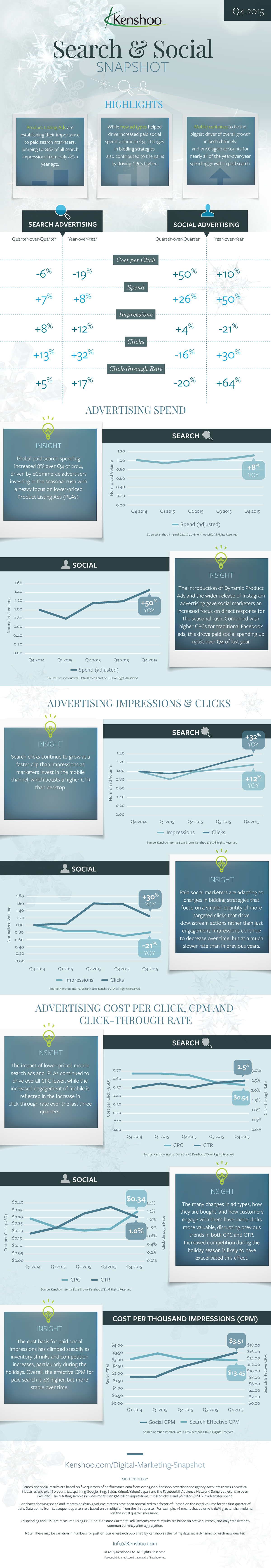 Kenshoo, which accounts for nearly $350 billion in annualized client sales revenue across social, search, mobile and display advertising, recently released digital marketing insights from Q4 2015, which highlights the changing landscape of social and search advertising.
