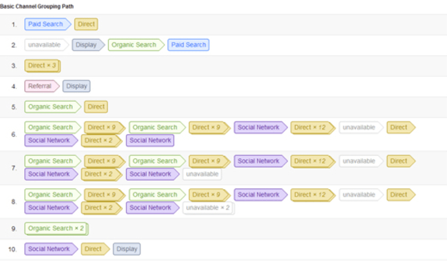 The path to conversion (as shown in the image below) can involve several different touches on channels including organic search, paid search, social media, email and more.