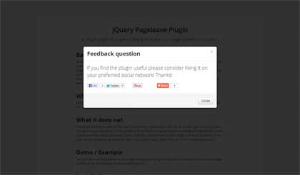 Even if you do happen to follow many of the best practices in Web design, and are a master at creating unique, engaging content, your website visitors may still leave without actually taking the action that you want them to take. Isn't there anything you can do? One more last ditch digital effort you can make to get in front of your visitors one more time with a compelling call to action? Well, how about the jQuery Pageleave plugin (https://github.com/jquerypageleave/jquery-pageleave/)?