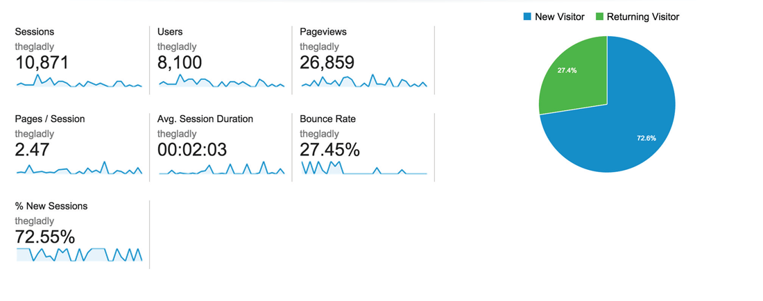 Image A provides a glimpse of The Gladly's actual website data as captured by Google Analytics. This kind of basic information is important for providing a general understanding of the website's overall performance. How many potential customers interact with this website? How soon do they leave the website?