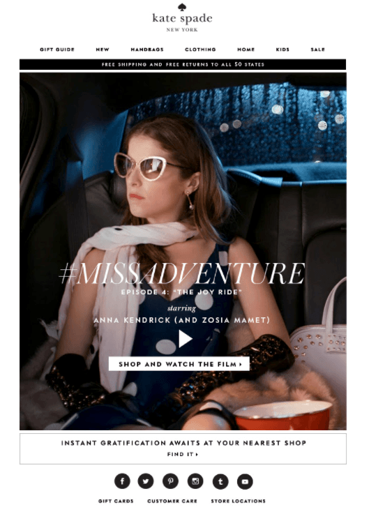 Last year, Target utilized technology that allowed viewers to buy items directly from their holiday videos, and consumers will see more of those interactive experiences from major retailers in 2017. From smaller brands with more limited resources, expect festive, seasonal promo videos across platforms and plenty of social video content that capitalizes on influencer relationships, similar to the videos featuring Anna Kendrick and Zosia Mamet that Kate Spade released in 2016.