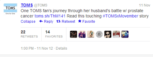 However, merchants can also feature guest content from their community members. For example, shoe and eyewear retailer Toms recently published an impactful blog post about Movember and cancer, which centered around one of the company's customers. While this blog post may not have received as many links as an article written by an industry professional, the message is forceful enough to resonate beyond the Toms community.