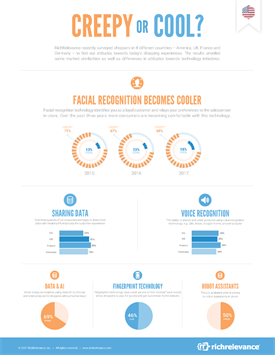 Consumers are certainly warming up to data collection, but not all practices are welcomed. When asked about facial recognition technology that identifies them as a loyal customer and relays their preferences to the salesperson in-store, 69 percent of respondents said it was "creepy" and 18 percent said it was "cool."