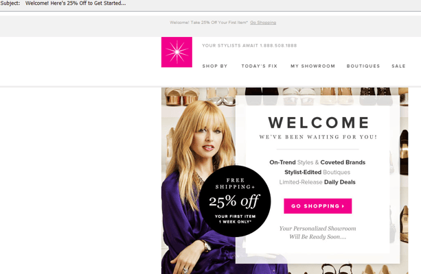 ShoeDazzle doesn't mess around with promotions. Not only does this retailer offer the largest welcome discount at 25 percent off, but the company also tells consumers that the discount is only good for a limited amount of time. This gives customers a sense of urgency, especially if they are already considering making a purchase from ShoeDazzle.