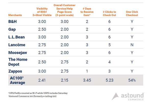 "Service is the quickest route to retention," said Lauren Freedman, SVP of digital strategy at Astound Commerce. "Shoppers expect efficiencies, accessible information, competency and timely information that allows for quick decision-making, avoiding any obstacles along the customer journey. In today's challenging retail environment where short term thinking often prevails, we hope retailers remain vigilant in their customer service investment and execution."