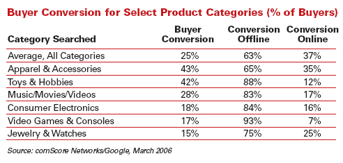 What do people buy offline? Just about everything. Over 80 percent of conversions occurred offline in categories like video games, toys & hobbies, consumer electronics and music/movies/videos.