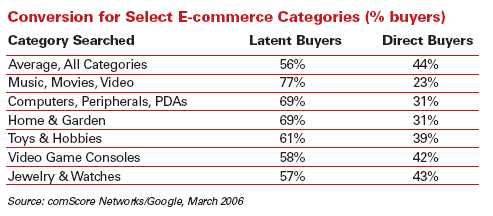 The comScore study analyzed the search behavior of 83 million consumers during the 2005 holiday season. Of these, the 8.6 million who subsequently purchased items online were found to be intense users of search engines across all product categories. They performed nearly ten times as many searches as non-buyers.