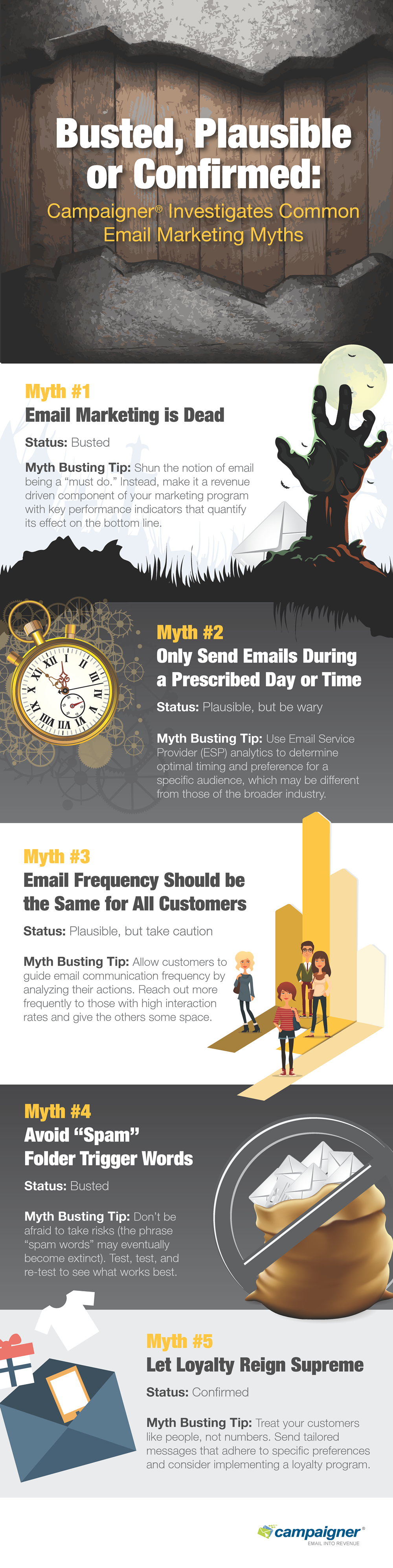 Campaigner, the email marketing brand of j2 Global, Inc., enlisted their experts to identify, analyze and label common myths as "busted, plausible, or confirmed," and are pulling back the curtain to unveil the truth behind industry "best practices."