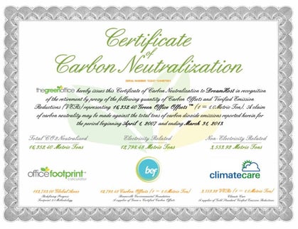 DreamHost also holds a Certificate of Carbon Neutralization: