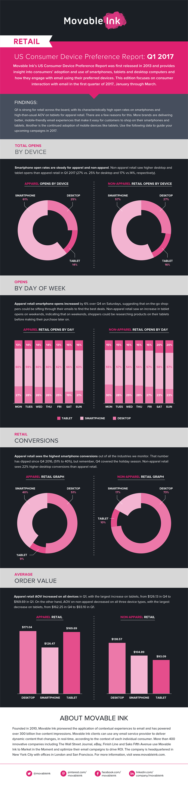 Along these lines, Movable Ink recently released the newest installment of its "U.S. Consumer Device Preference Report," and found uncharacteristically high email open rates on smartphone devices within the retail sector.