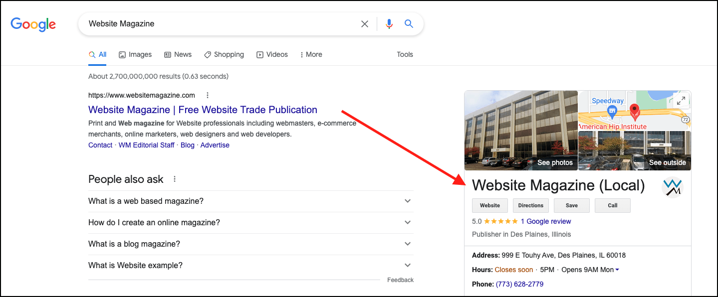 Your Google My Business profile is the first chance to establish trust with the searcher. Your profile includes your business's name, address, hours of operation, phone number, customer reviews, and more.