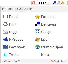 Now, Clearspring looks to ride the momentum. A new feature of AddThis is Embedded Content Sharing. Using a customizable API, content such as video, flashe widgets, images, etc., can be shared with the AddThis widget to sites that support embeddable content. So, a user wanted to share your video on their own WordPress blog, they can do that. This feature is still new, but it points to the ability to share any kind of content, anywhere. This is one-button syndication that could prove to be a powerful method to share interactive content.