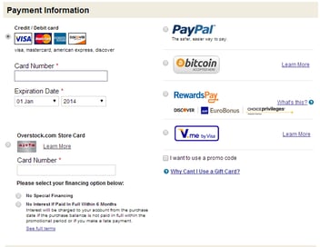 Overstock.com offers a variety of alternative payment options, including Bitcoin.