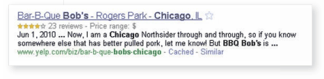 Individual reviews can receive the Rich Snippet treatment with properties such as the name of the item being reviewed, its rating (due to the many possible ways to indicate ratings, Google has provided some guidance on this - https://bit.ly/9kFtlp), the reviewer or author, the date the item was reviewed and a description and summary.