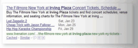 Receiving exposure on event information is a great reason to use Rich Snippets. Information such as an event's title, date and venue can help a listing stand out in the search results. Google currently uses the data only for pages containing collections of events, but websites displaying events should consider adding the snippet to their pages. There are several other event fields to include, such as geographic coordinates, event type (festival, concert or lecture), duration and even an image or photo.