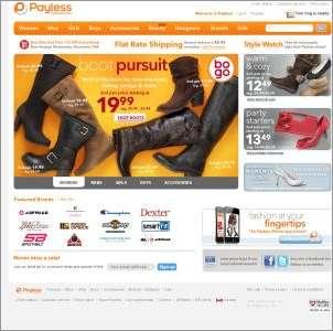 The Good: The site looks to be attractive and does a good job of showing a little variety. Most important, the shopper can see prices without a magnifying glass - $19.99, $12.49, etc. Payless has spent years associating "bogo" (buy-one-get-one free) with their brand and it's plain to see on this preview. In short, the entire preview supports the notion of discount footwear.