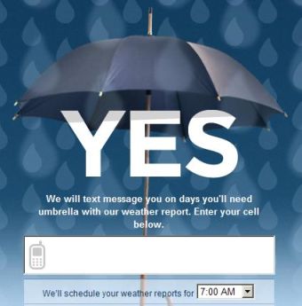 Umbrella Today is about as simple as a website and service can get. You enter your ZIP code and the site tells you if you should bring an umbrella with you today. But their SMS offering is where the site excels.