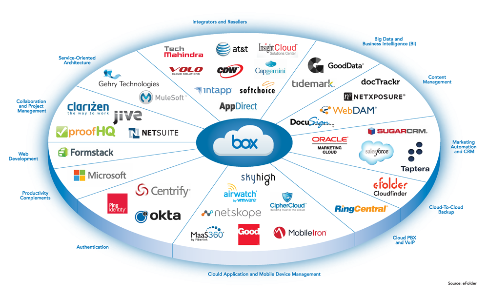 This vast ecosystem (diagrammed below) shouldn't come as a surprise, however, as Box announced that its service supports more than 27 million people and 240,000 businesses and companies are racing to get their applications in front of Box users.