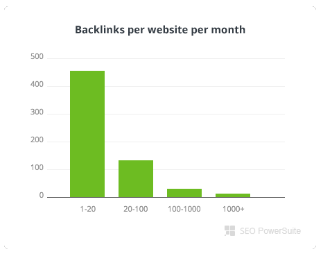 + BACKLINK QUANTITY: The survey also revealed how many backlinks were being acquired each month. Link-Assistant did not go into much detail but it appears (based on the chart below) that well over 80 percent of SEOs acquire less than 20 links per month and approximately 15 percent acquire between 20 and 100. Only a handful of respondents build over 100 links per month.