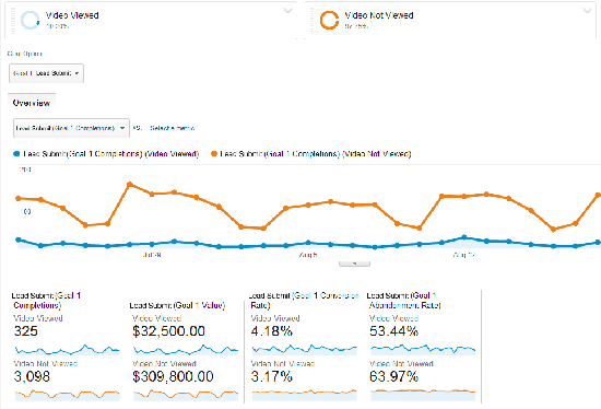 (Custom segments demonstrate that visitors who viewed a video converted at 4.18 percent rate, vs. a 3.17 percent rate for visitors who did not view a video - a 32 percent difference.)
