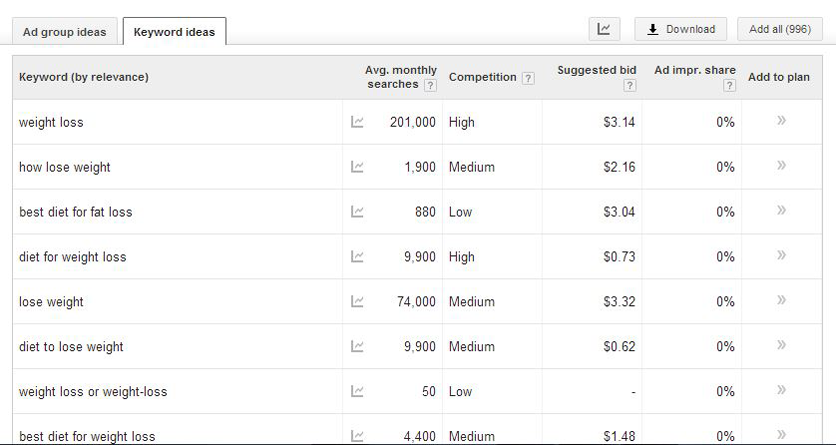 The second option for choosing affiliate products is to start with general terms that describe what your blog will be about and then you will find products that fit the bill. If you look at the sample site I created, you will see that the general theme is fitness and weight loss. Using this information, we can begin to find out what people search for in relation to this topic. Here is how you can find some great target keywords.