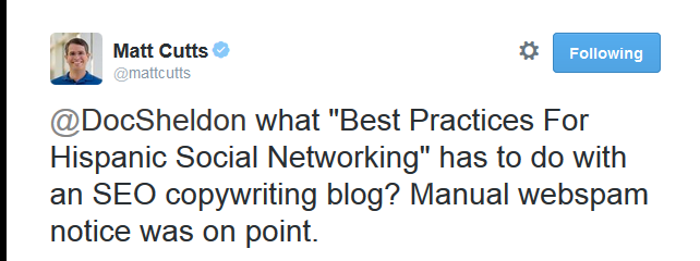 - Focus on relevant sites. Google's head of webspam Matt Cutts recently shed some light on a site that received a penalty for publishing "spam" guest posts: they weren't relevant. Here's the tweet: