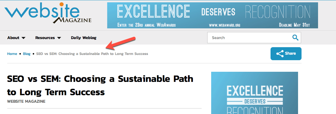 While not every website uses the breadcrumb trail, this is a very useful strategy for SEO because it helps Google bots understand the site hierarchy.
