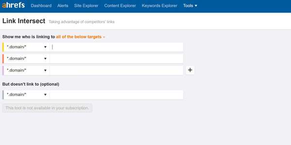 Link Intersect by Ahrefs allows you to type in the URLs of your competitors to see which sites are linking out to two or more of them. If you find a site that links out to all three of your competitors, the likelihood that you can secure a link on that site is higher. Repeat this for your top competitors for each keyword you plan to target and you can create a pretty large prospect list in no time.