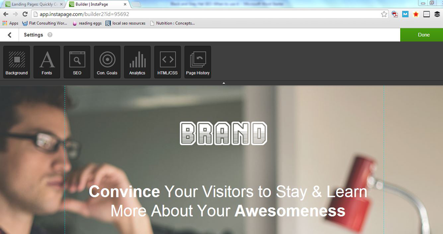 As this point you have a site setup with content, social shares, and the product you are looking to sell for under $300. Building links will be the next step but before we get there, here is how to set up a page using Instapage.