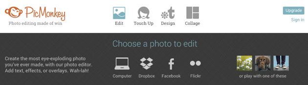 Pinterest is all about images, so if you are looking for an online image editor, look no further than PicMonkey. This service enables users to edit and touch-up images, as well as create designs and collages. PicMonkey also features a variety of effects and fonts that users can incorporate into their images.