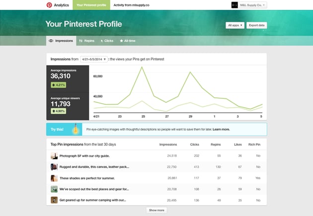 The Pinterest Analytics dashboard recently underwent a refresh. The dashboard now includes more detailed analytics, including the ability for users to see what people are pinning from their website and the ability to see how pins from their own Pinterest profile are performing.