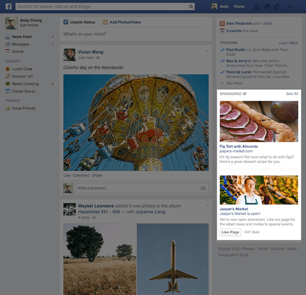 Where does this put brands? It is possible brands will only appear in the right-hand column. Users, however, have been trained over many, many years to ignore this section, because that's where ads have always been. Look at this screenshot ( via Facebook) from 2014: