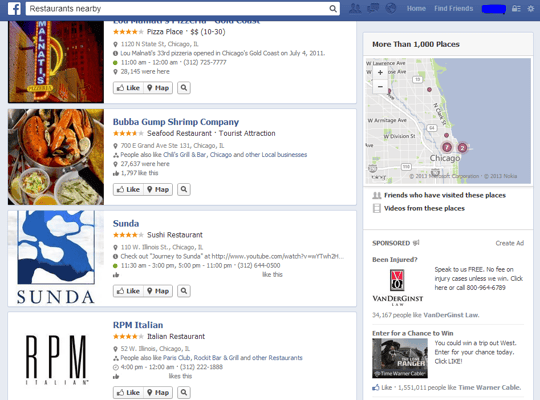 When looking for businesses with Graph Search, users can currently refine search results with filters like place category, who has liked the place, location and who has visited the place. That said, don't be surprised if these filters become more robust in the future. If you think about it, just because someone has liked a business's Page, doesn't necessarily mean that they would recommend that place to their friends. By adding filters like ratings (search results already display a star rating system for businesses), Facebook will be able to provide better results to its users. Plus, this type of functionality would also help it compete with the Yelp's of the world.
