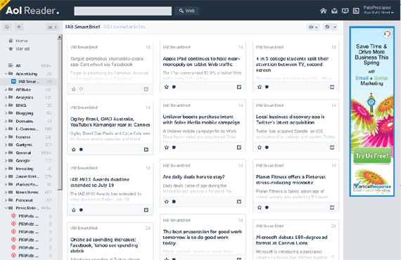 Aol Reader is currently in beta, which means that you must sign up to receive access to this service. That said, the platform is free and enables users to import their Google Reader subscriptions, customize the dashboard's layout, save articles and organize content with tags. Moreover, the AOL Reader API allows developers to create their own applications for the Web, desktop and mobile. It is also important to note that since this platform is still in beta, users should expect new features to be rolled out, like mobile apps, integrations with other third party services, notifications, sharing and more.