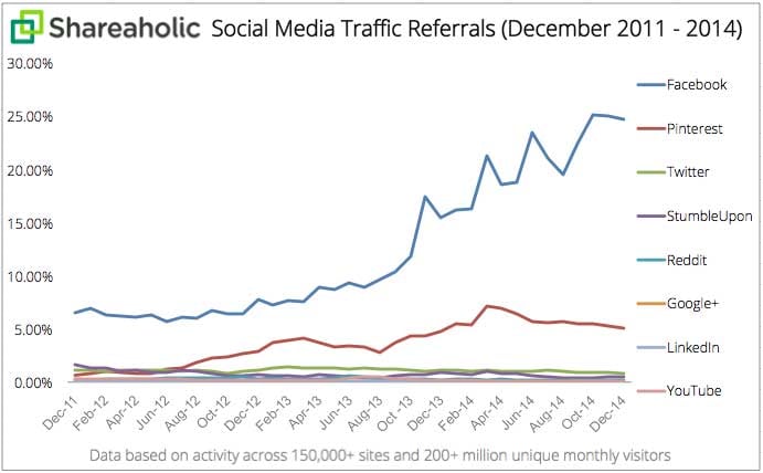 What's the reason for shift? Shareaholic's Danny Wong suggested that "Over the years (and in 2014, especially), our media consumption habits have changed dramatically. We rely less on homepages and search engines, discovering news pertinent to us through social media and direct messaging on mobile apps."