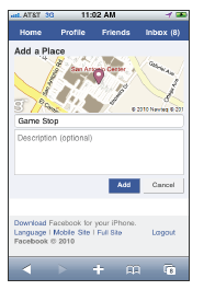 According toe Facebook, "Facebook Places allows users to share where they are, find their friends and discover interesting places nearby." When customers check into your Place, these social mentions can generation impressions in friends' News Feeds and extend your brand to new customers for free.