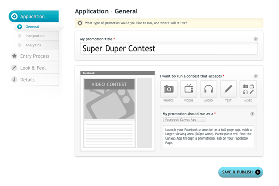 Brand marketers looking to run their own online promotions on Facebook and the social web might want to take a good look at Strutta.The company's latest releases aims to simplify the process of setting up and launching content and sweepstake campaigns. Social media marketers can now launch branded promotions on Facebook pages (in a page tab or as a Canvas app), within an existing website through an iframe, on a standalone microsite and with mobile accessibility and full HTML5 video support.