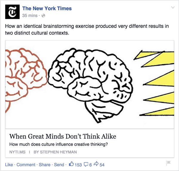 documentation to use Open Graph Markup within their content management systems (CMS). Otherwise, as Facebook states, it will take a "best guess about the title, description, and preview image for your content." Facebook provides this example of a company using Open Graph Markup, as you can see the details of the post complement each other and are optimized for click through (something until very recently marketers were able to customize freely).