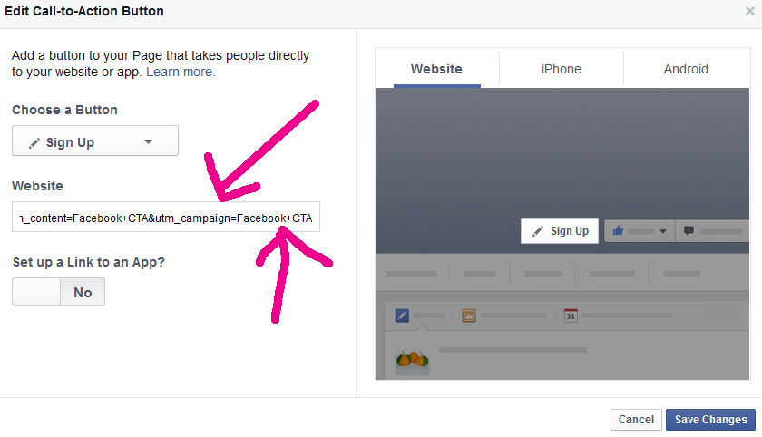 Google Analytics provides a URL builder, which allows marketers to create source-rich links to share across the Web and then track. For example, Facebook provides a Call-to-Action feature for business Pages, allowing the company to set its most important objective (e.g., sign up, learn more, etc.). By creating a source-rich URL, brands can set the parameters (where the person is coming from, what campaign is it) and then tie that to goals set within Google Analytics to track how many people are completing that objective via Facebook.