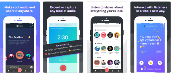 Anchor.fm is trying to do something similar with its audio-based socializing app that makes recording things happening in the environment as easy as talking on the phone. It lets users add content streams to personalized stations, then broadcast them for anyone to hear. It also integrates with Spotify and Apple Music, plus lets users paste sound bites from others into their content.