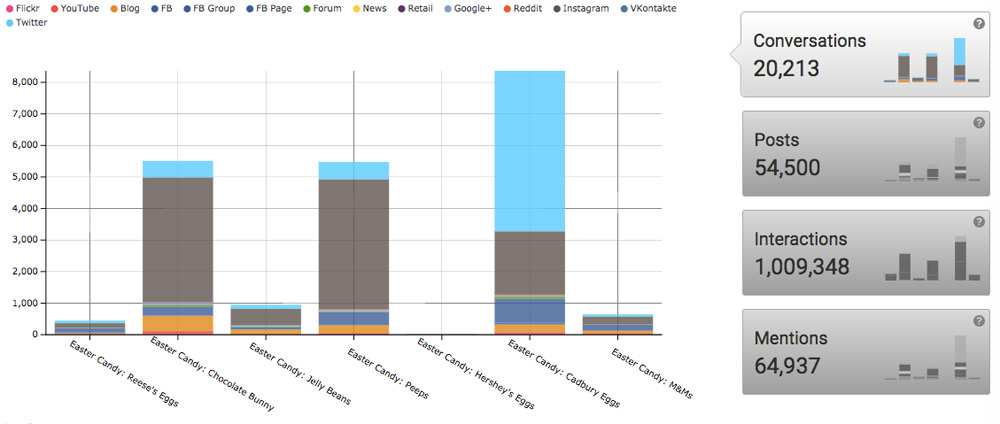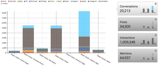In Easter candy chatter, the Tracx study revealed over 20,200 conversations; 54,500 posts; and over 1 million interactions: