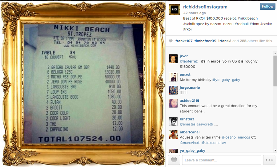 On Facebook, you're sentenced to a life of baby pictures and viciously tagged party photos of people who have real jobs that you know in real life. Facebook was born before the time of oversharing, where we were still cautious about letting people into our lives online and that's why you cringe every time you see the 20 or so pending friend requests you dodge every time you log in. With Instagram however, you can essentially build the "life" you want to live with very few obstacles in your way. Here it's possible to have breakfast with Beyoncé in Belize, and guzzle Veuve in Venice with the self-proclaimed (incontestably so) RichKidsofInstagram and still make it to your cubicle by 9 a.m. the next day. Meanwhile on Facebook, "No, I didn't get it Aunt Ruth but I'll check again..."