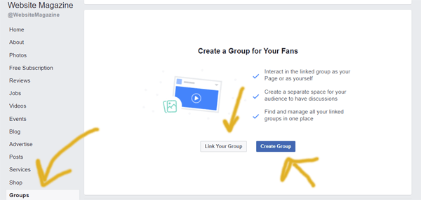 This spring, Facebook began testing a way for admins to link existing Facebook Groups to their Page or create new ones. The feature now appears to be available to all Pages.