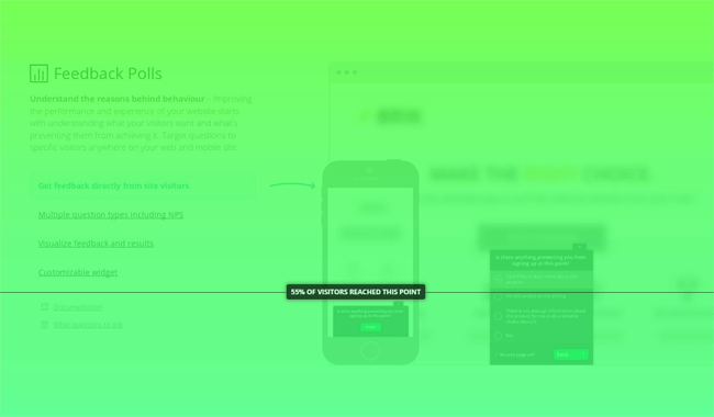Companies can see visitor behavior with Hotjar, which offers a number of different data visualizers including click, move and scroll heatmpas as well as heatmaps split by device type. With scroll heatmaps, for example, users can see that X percent of visitors reached a certain point (often showing much fewer visitors reaching points below the "fold").