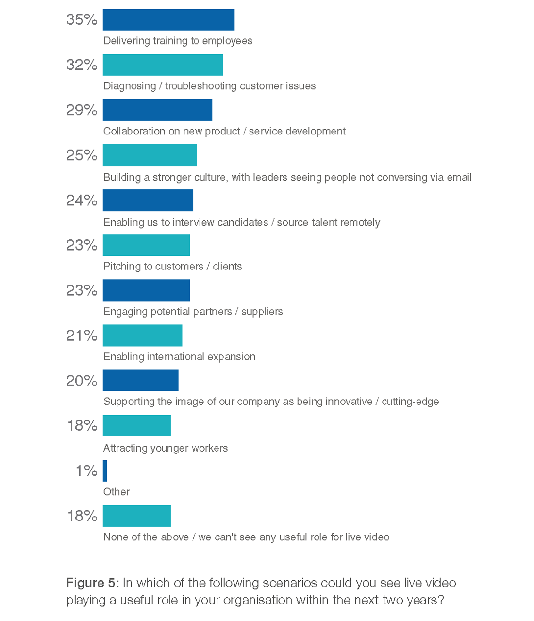 We were surprised to find that groups of employees feel their management does not encourage the use of video communications. Only 28 percent of respondents said their employers are proactively encouraging them to use video communications at work. Yet majority agree that live video can reap many benefits, including greater employee retention (69 percent), greater diversity (65 percent) and less travel (50 percent). By implementing modern communication technologies, management will continue to realize these rewards and more to improve overall business practices, collaboration and connections within their teams.