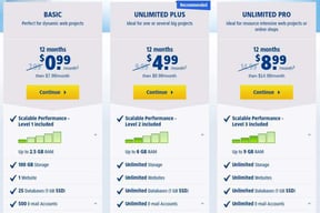This menu is from 1&1 Hosting - one of CNET's Best Web Hosting Providers for 2018. Pricing schemes based on increasing storage and RAM, like this one, are fairly common.