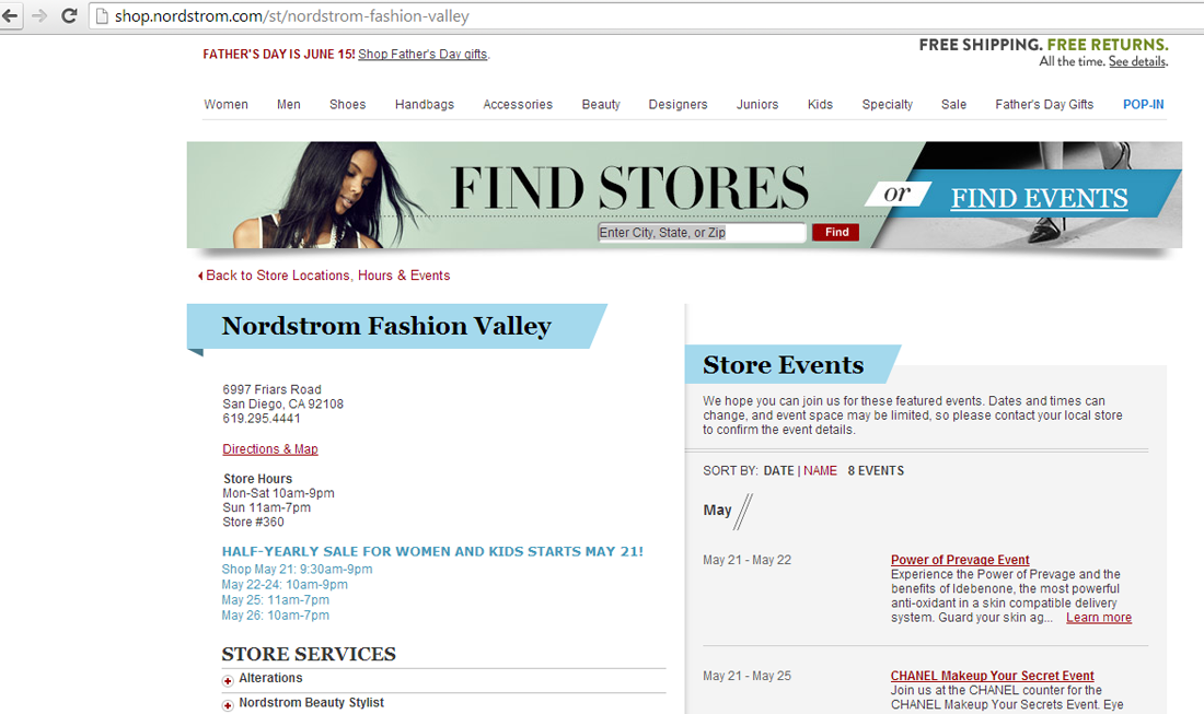 (Editor's Note: Nordstrom, for example, takes searchers to the local landing page shown below when they query "Norstrom San Diego".)
